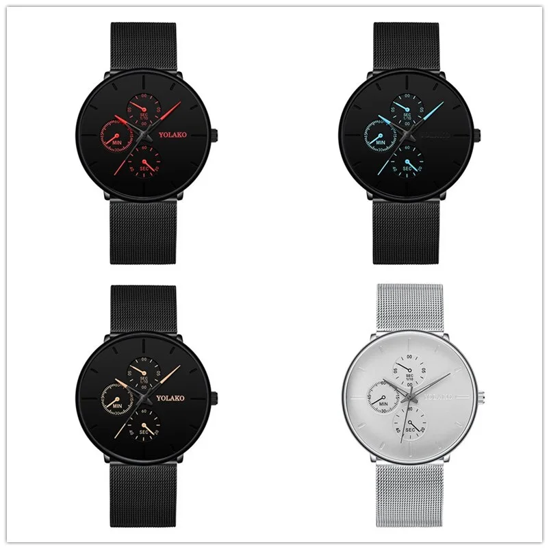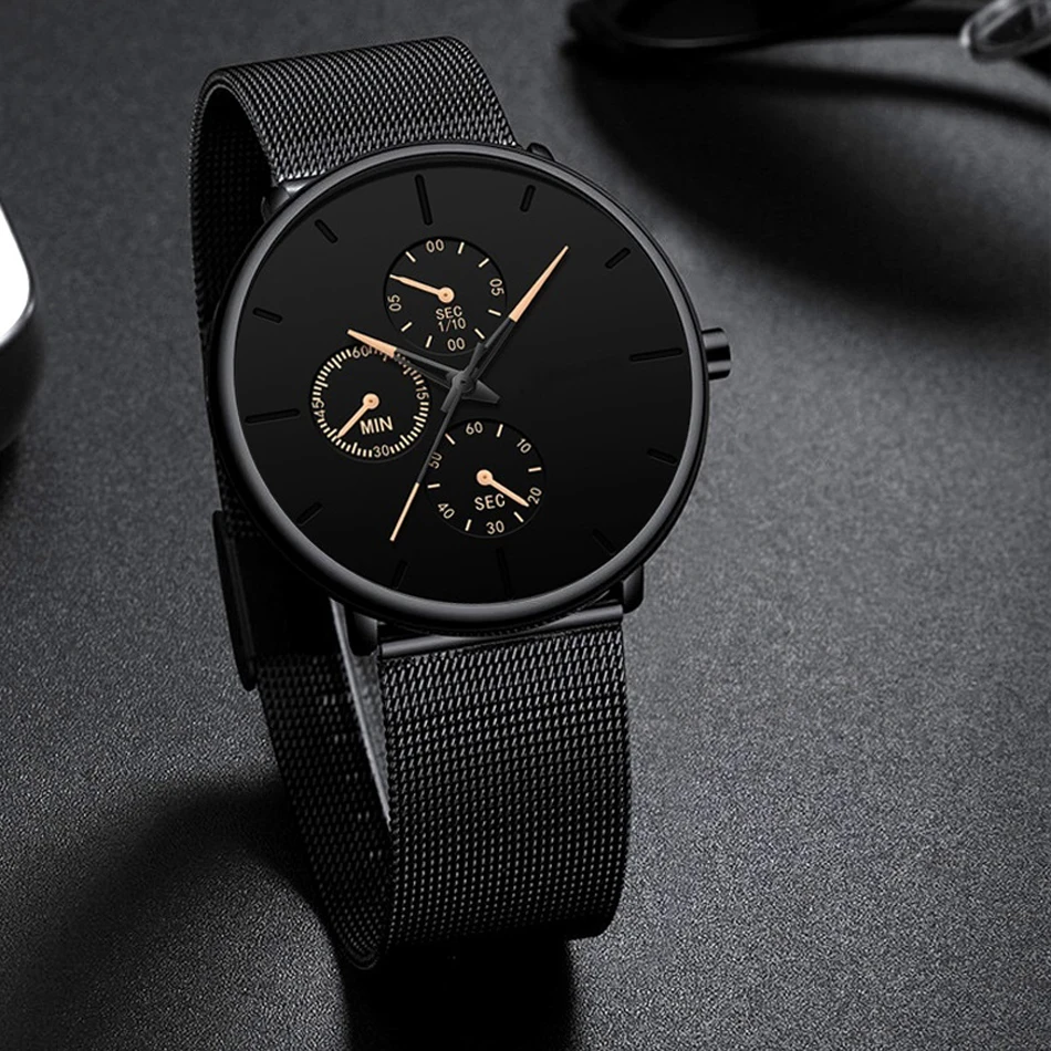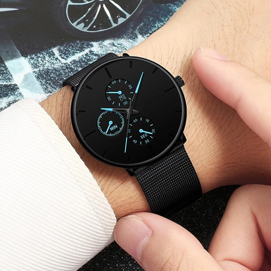 Nova moda masculina ultra fino relógios genebra elegante masculino negócios malha aço inoxidável relógio quartzo relogio masculino venda quente hora