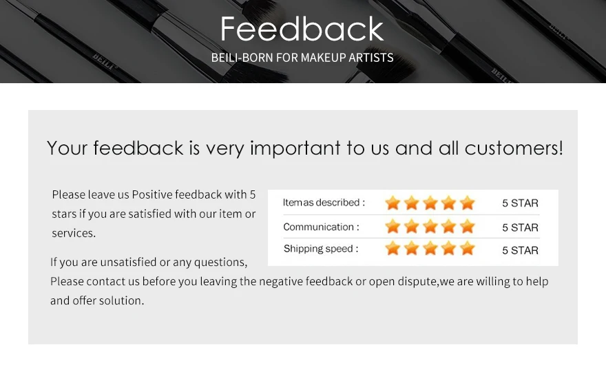 Por favor deixe-nos um feedback positivo com 5 estrelas se você está satisfeito com nosso item ou serviços. Seu feedback é muito importante para nós e todos os clientes! Vamos agradecer a você 🙂
