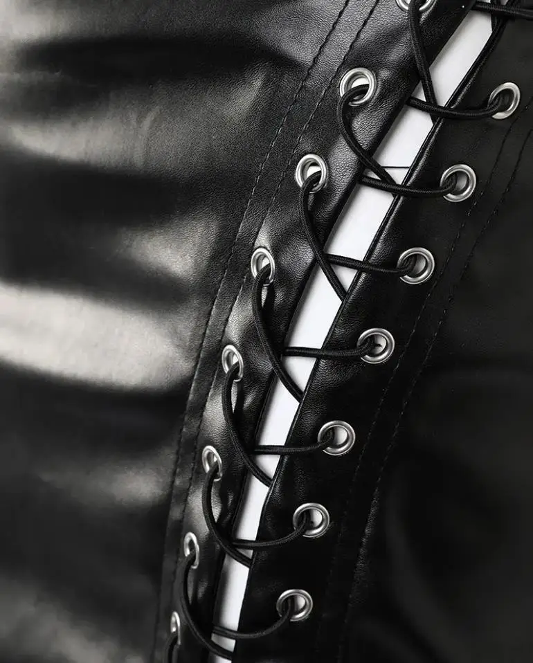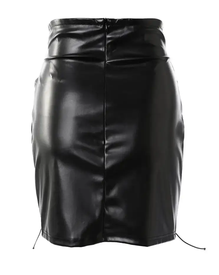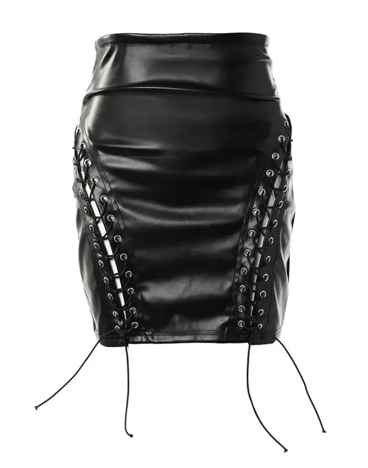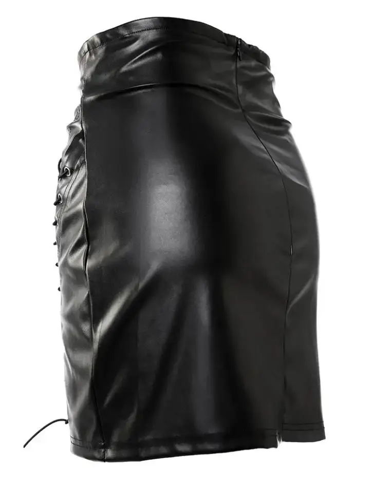 Women’s Sexy Leather Skirt 2024 Summer New High Waist Pu Leather Mesh Lace Up Short Skirt Tight Wrap Hip Half Mini Short Skirt